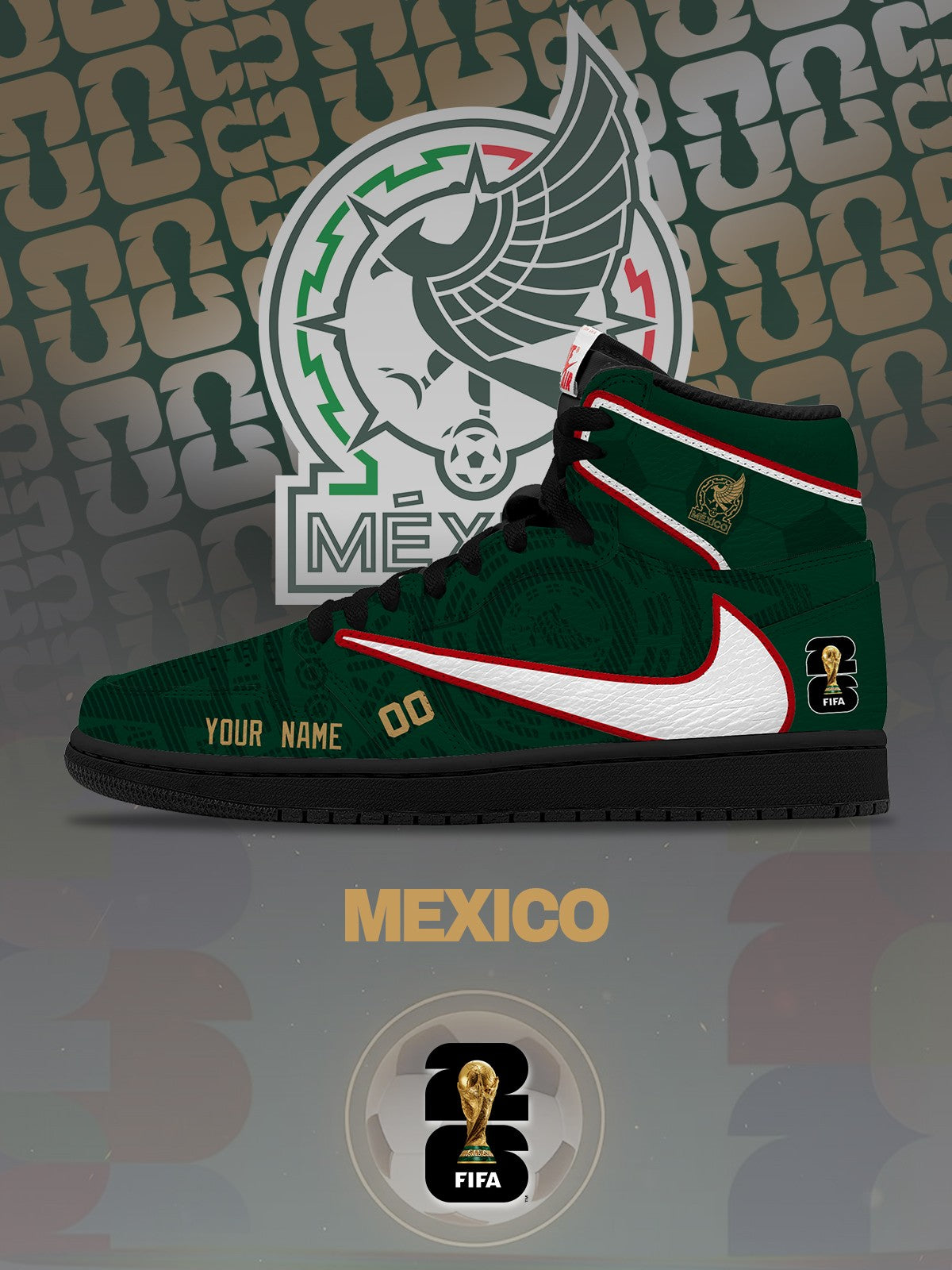Secure the ultimate streetwear grail with hand-crafted World Cup 2026 Mexico V.1 Mocha-Vibe High Kicks. Customized on a base of Vintage Basketball High. Key specs include vintage-aged midsole aesthetics backed by our quality guarantee.